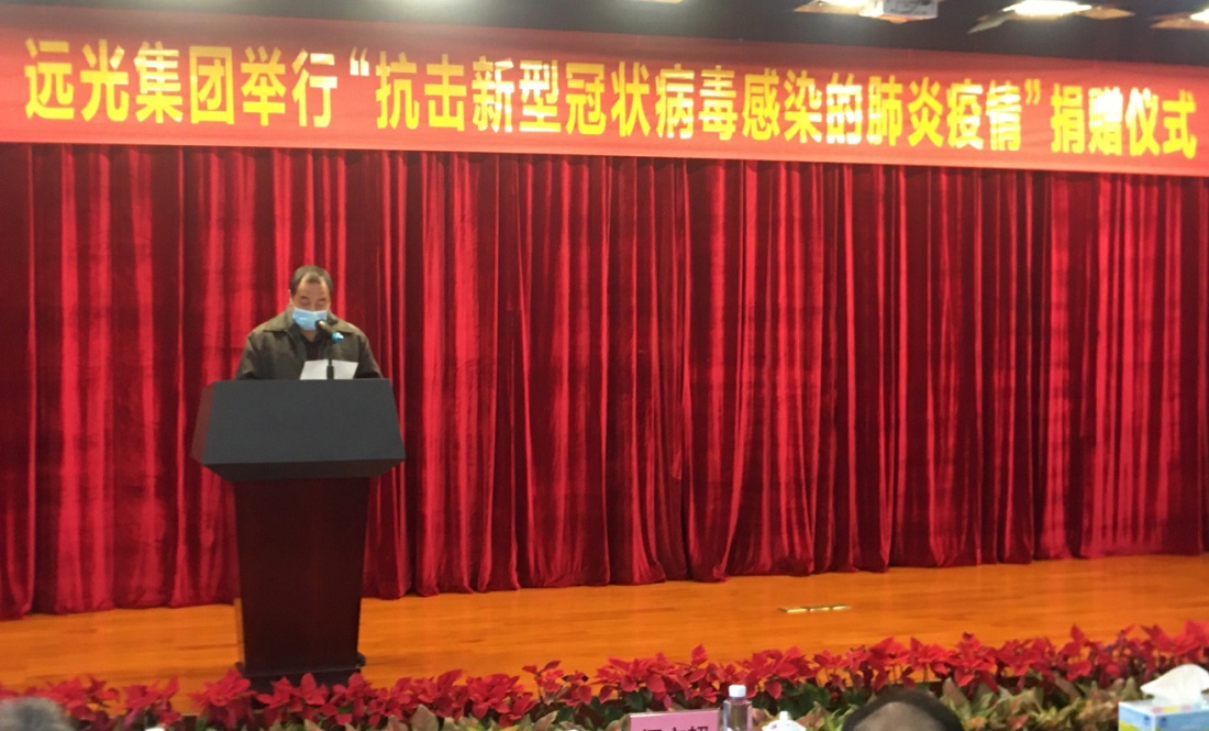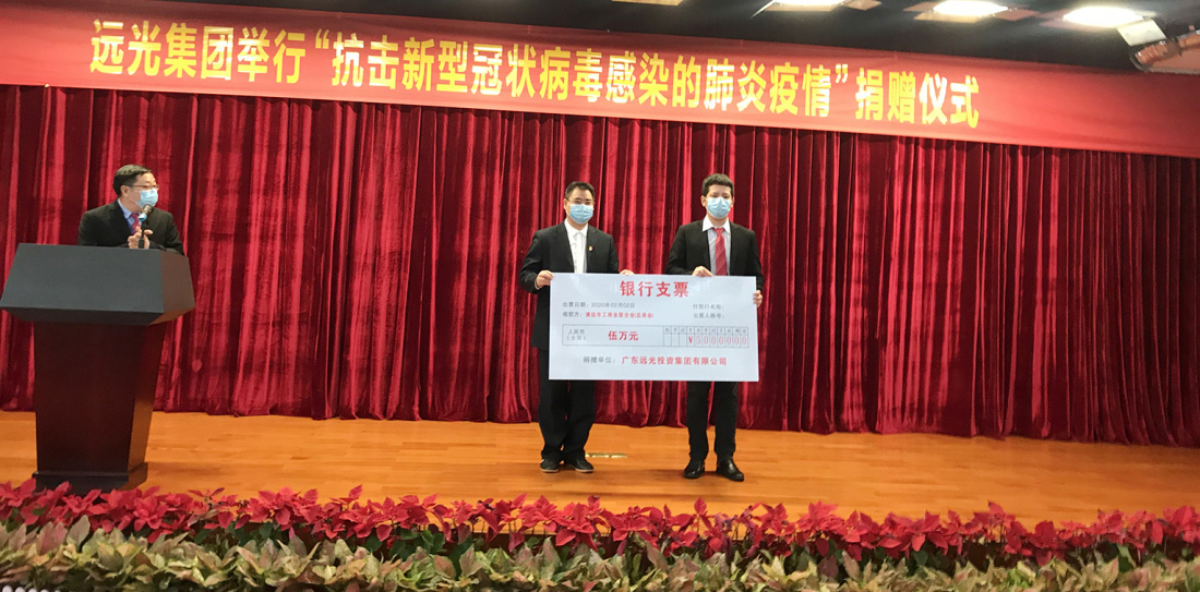 十三届全国人大代表、清远市中小企业协会会长、远光集团董事长蔡仲光致辞时首先对疫情发生以来,英勇奋战在抗疫最前线,为保护人民生命健康作出了重大贡献的广大医务工作者致以了最崇高的敬意和感谢!并表示:在疫情防控的关键阶段,前期远光集团虽已带头并发动协会会员单位通过多渠道向社会捐款捐物累计达150多万元,但做的还不够多,还应该主动担起更多的社会责任,所以再次主动捐赠100万元作为抗击新冠肺炎疫情防控专款使用(注:50万捐赠湖北省随州市作为疫情防控专款,50万捐赠清远本地作为疫情防控专款)。蔡仲光希望能为湖北和清远人民群众的生命安全尽绵薄之力,希望大家齐心协力早日战胜疫情。