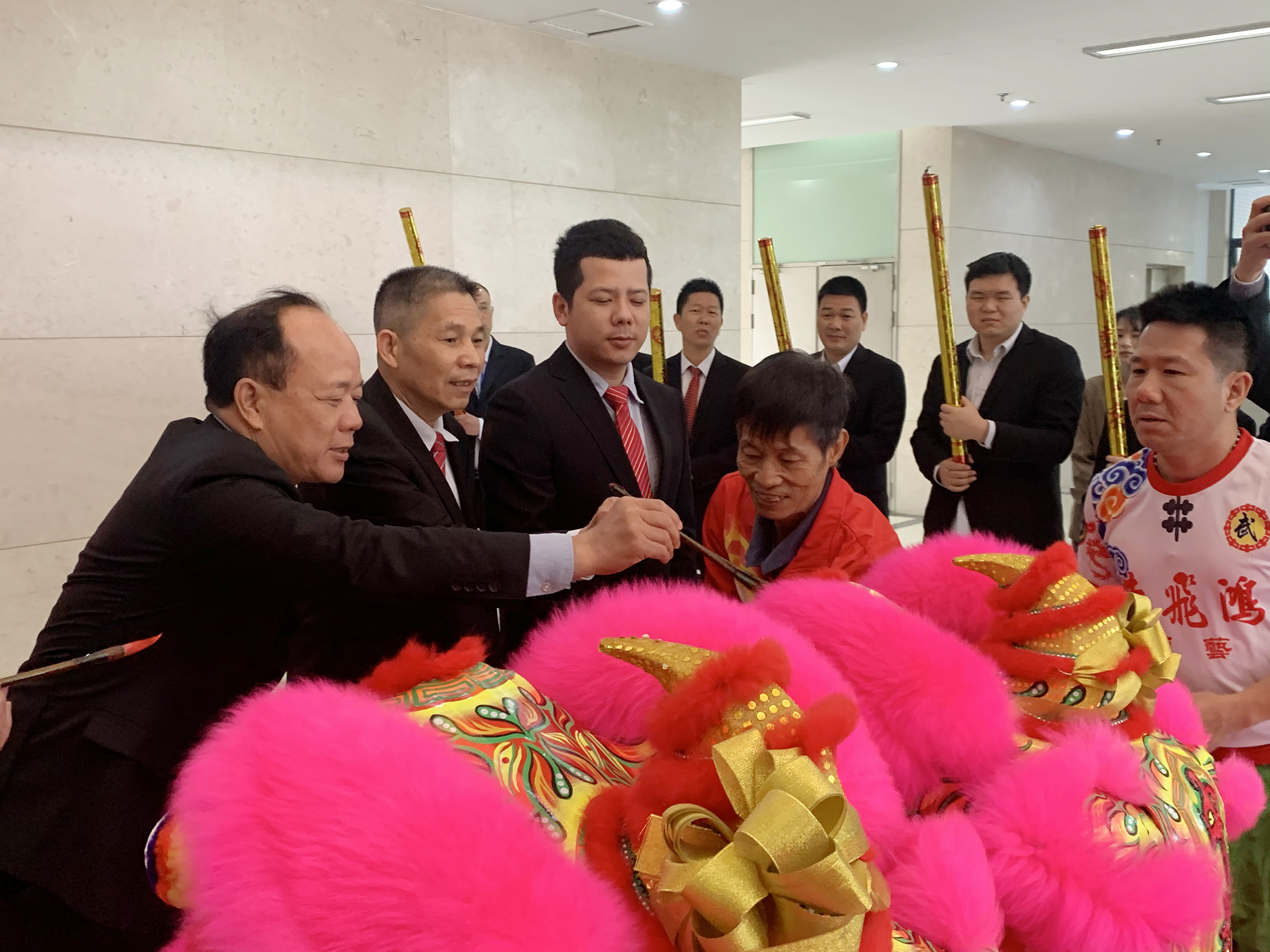 远光集团董事长蔡仲光、总裁蔡凯俊、董事钟镜森、代理董事赖振华共同为雄狮开光点睛,赋予其生命与灵性。将朱砂涂在眼睛和天庭,为远光人带来吉祥如意的好兆头。