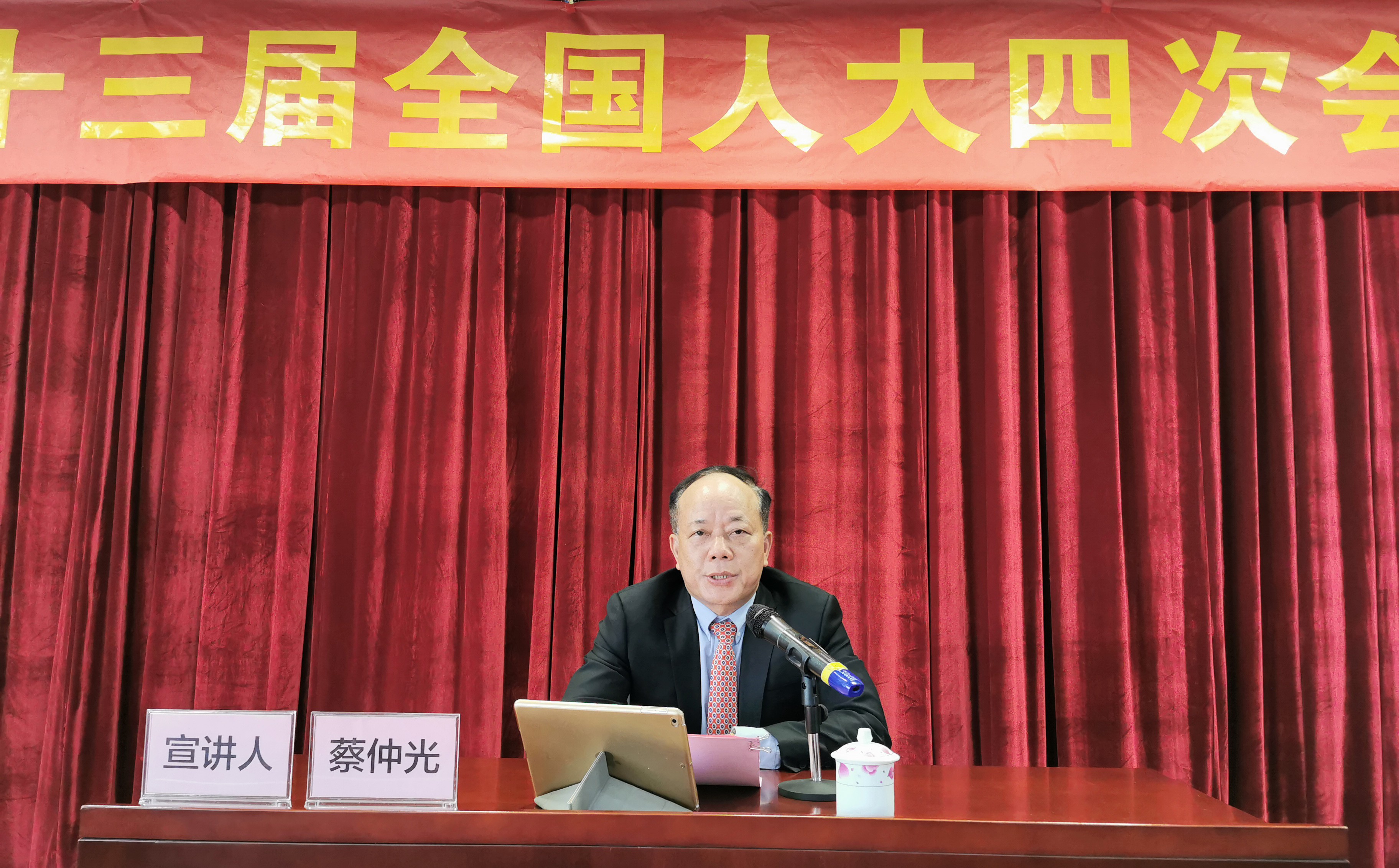 会上,蔡仲光代表传达宣贯了习近平总书记在参加十三届全国人大四次会议内蒙古自治区和青海省代表团审议、看望参加政协会议的医药卫生界教育界委员时的重要讲话精神,并对2021年政府工作报告、全国人大常委会工作报告、两高工作报告等相关政策进行解读、宣导;同时介绍了《国民经济和社会发展第十四个五年规划和2035年远景目标纲要》和本次大会审议通过的关于修改《中华人民共和国全国人民代表大会组织法》、《中华人民共和国全国人民代表大会议事规则》及《全国人民代表大会关于完善香港特别行政区选举制度》的决定,还介绍了广东代表及清远代表在北京履职的情况。