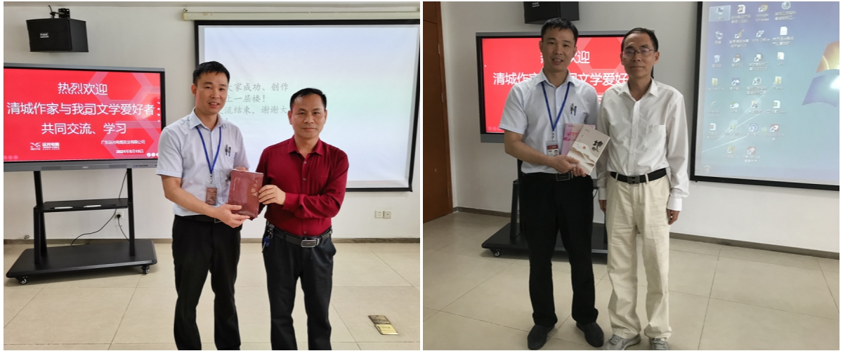 在作家和远光公司文学爱好者们的共同见证下,梁日洪主席与KY中国官方网站党支部书记李壮烈为“清城区文学企业创作基地”举行了揭牌仪式,并向远光工会赠送200多本原创书籍。