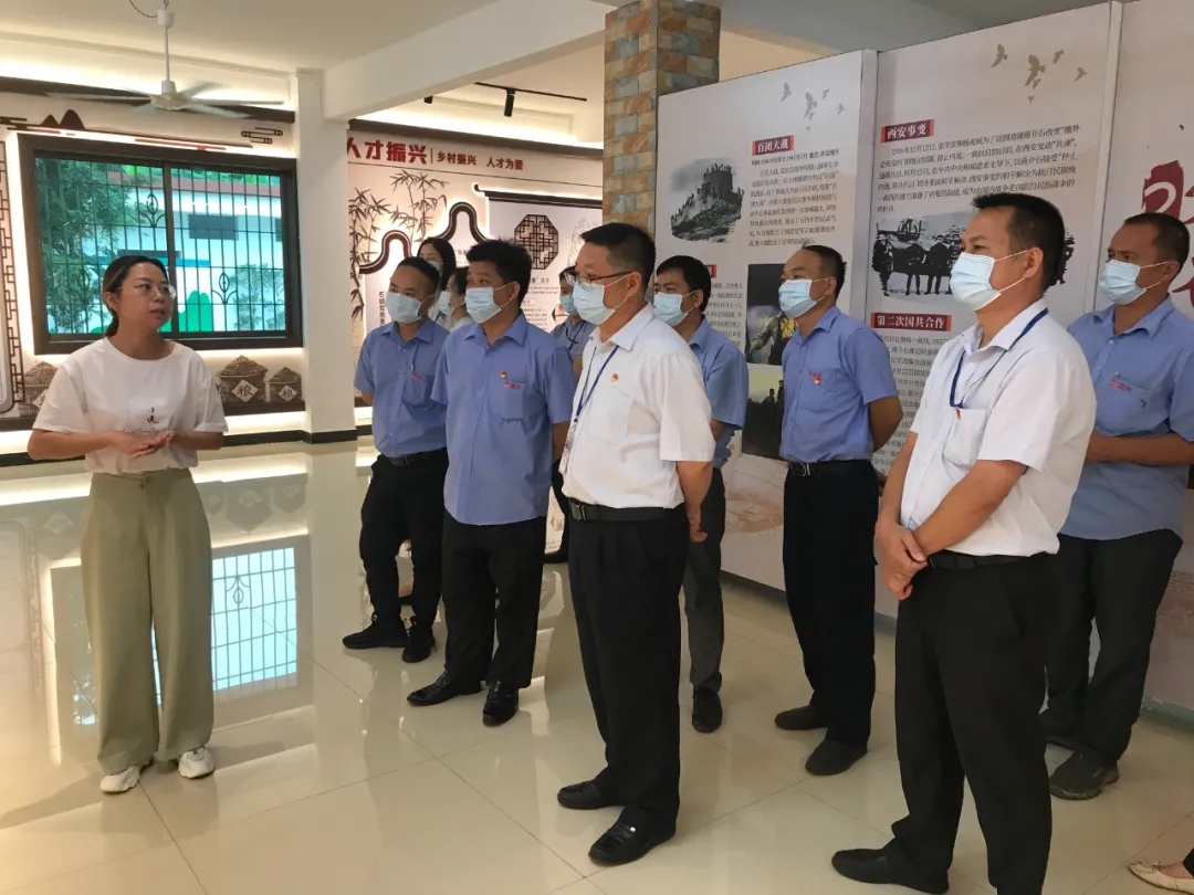 随后,全体参会人员一同前往清远市石角镇石岐党建服务中心进行党史参观学习。该展馆增设“中共百年党史”专题展示区,以百年党史为主脉络,分为“党的新生期”、“党的奋斗期”、“党的探索期”、“党的成熟期四大版块,全面回顾自建党以来,我党艰苦奋斗、历经磨难,获得伟大成就的发展历史。走进展馆,跟随讲解员的生动讲解,我们了解到,石岐总支部把人才振兴摆在乡村振兴的重要位置,通过加大本土人才培育力度、汇聚“外脑”力量,引导各类人才投身美丽乡村建设,激活乡村振兴内生动力。随后,全体党员们在鲜艳的党旗面前,郑重地举起右手,重温了入党誓词。