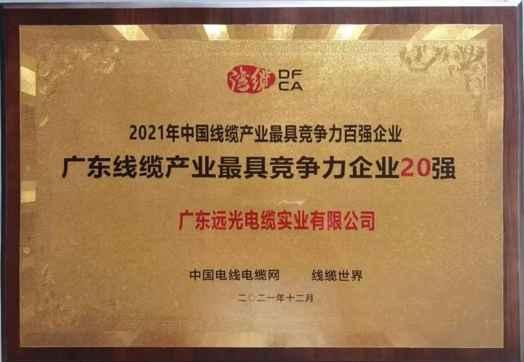 远光电缆获得“广东线缆产业最具竞争力企业20强”称号,是线缆行业众多专家对远光电缆发展的高度认可,是线缆行业对远光电缆优质产品和真诚服务的充分肯定,也充分体现了远光电缆在线缆行业强大的竞争力。在未来的发展道路上,远光电缆将继续秉承“诚信务实,优质高效”的品牌价值观,以产品为核心,追求卓越品质,提升企业品牌竞争力,打造远光品牌标杆;坚持科技创新,落实国家新发展理念,谋划远光新发展格局,紧随国家及行业的发展步伐,促进企业高质量发展的同时,为行业的发展贡献一份力量。
