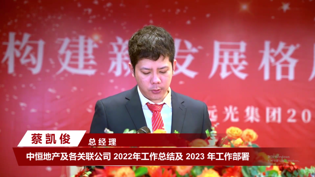 集团总裁蔡凯俊总结了中恒地产及关联公司的工作成绩,要求各部门和关联公司要客观分析取得的成绩和经验,清楚认识到工作中存在的不足。在2023年转折之年,抓住时机,铆足干劲,完成好集团公司下达的目标。