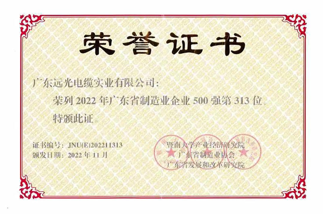 据了解,自2013年以来,“广东省制造业企业500强”活动已连续举行9年。今年评选的广东省企业500强上榜企业总体实力明显增强,远光电缆作为清远龙头企业及全球优质电缆制造与供应商,连续4年入选广东省制造业企业500强,综合实力和行业地位得到了充分肯定和高度认可。