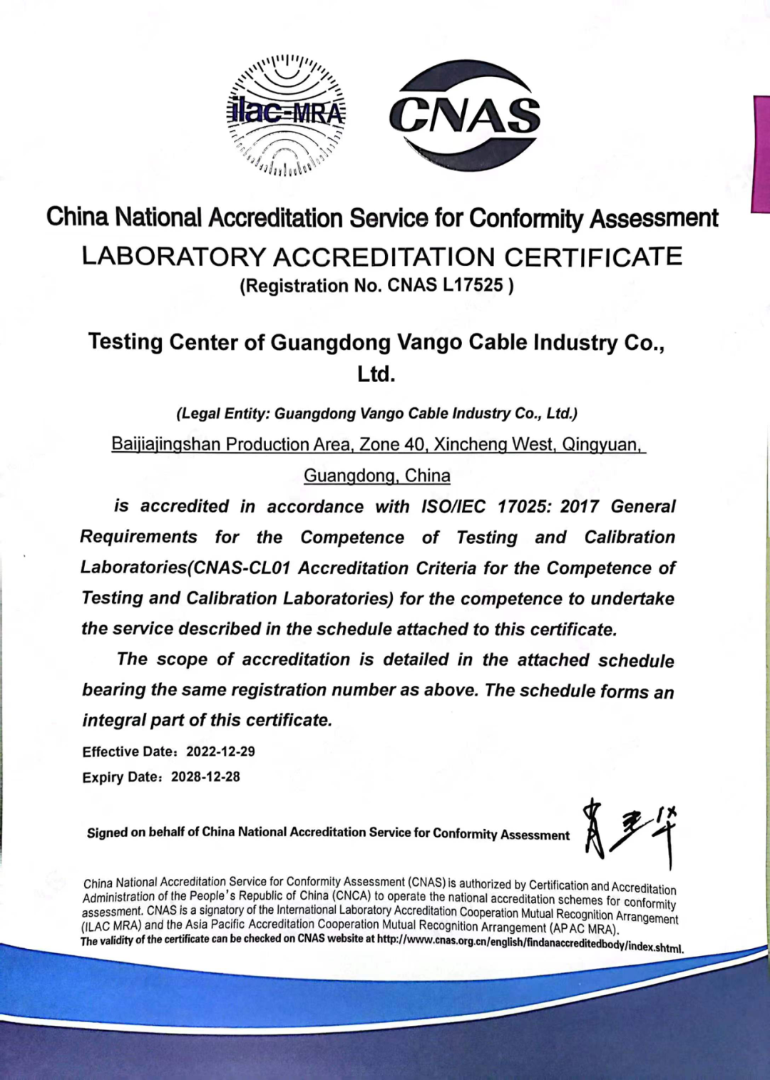 此次公司检测中心CNAS认证的检测,是依照国际标准(或国家标准),对电线电缆类产品进行结构尺寸、机械性能和电性能试验。远光电缆检测中心经过意向申请、正式申请、评审准备、文件评审、现场评审、认可批准等六个程序,于2022年12月29日成功通过CNAS国家实验室认可。