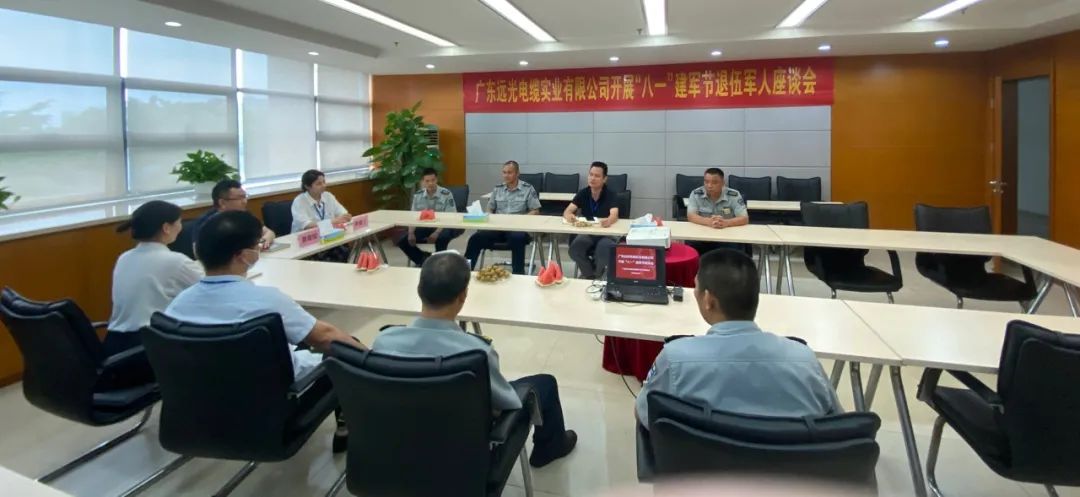 为庆祝中国人民解放军建军96周年,大力弘扬双拥优良传统,在集团公司领导的指导下,8月1日下午,远光电缆工会组织召开“八一”建军节座谈会。远光集团党支部书记李春兰、远光电缆工会主席黄章斌、远光电缆退伍军人代表共10余人齐聚一堂,共庆建军佳节、共叙部队情怀、共畅美好未来。