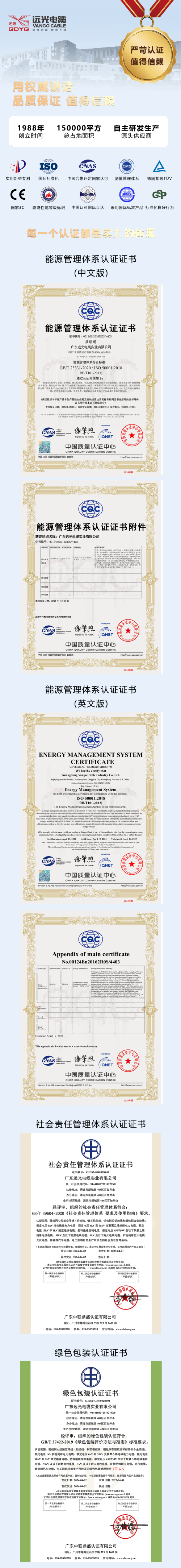 为培育新质生产力,远光电缆也对生产绿色化、效能化提出更高要求并作出不懈努力,今年以来,已经先后通过了能源管理体系、社会责任管理体系和绿色包装认证。公司将继续坚守初心,在生产过程中做好节能减排,实现低碳发展,共护绿水青山,共建美丽清远,为地方经济发展贡献远光力量。