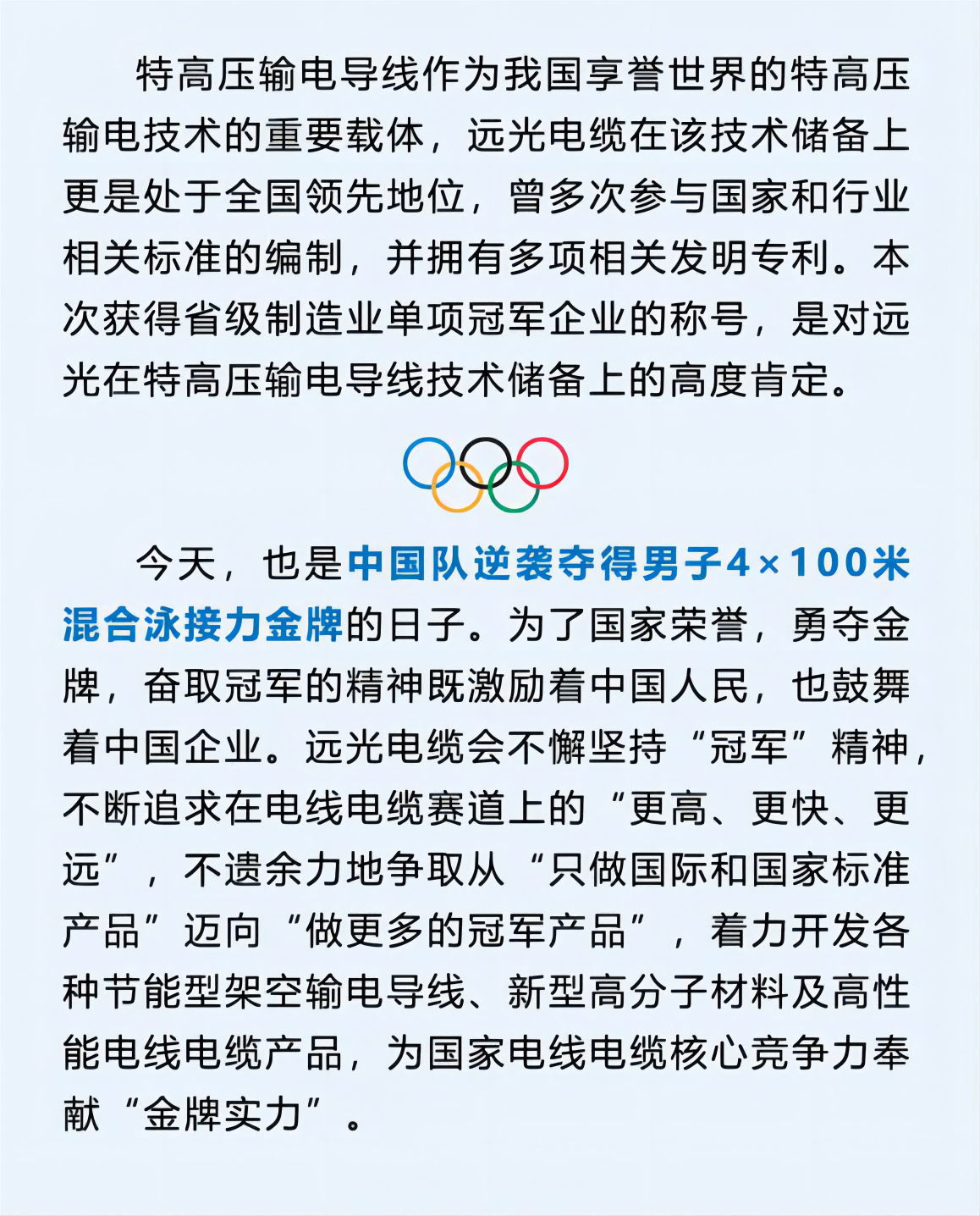 超特高压输电导线“摘金”,我们也是冠军!——远光电缆成为广东省省级制造业单项冠军企业