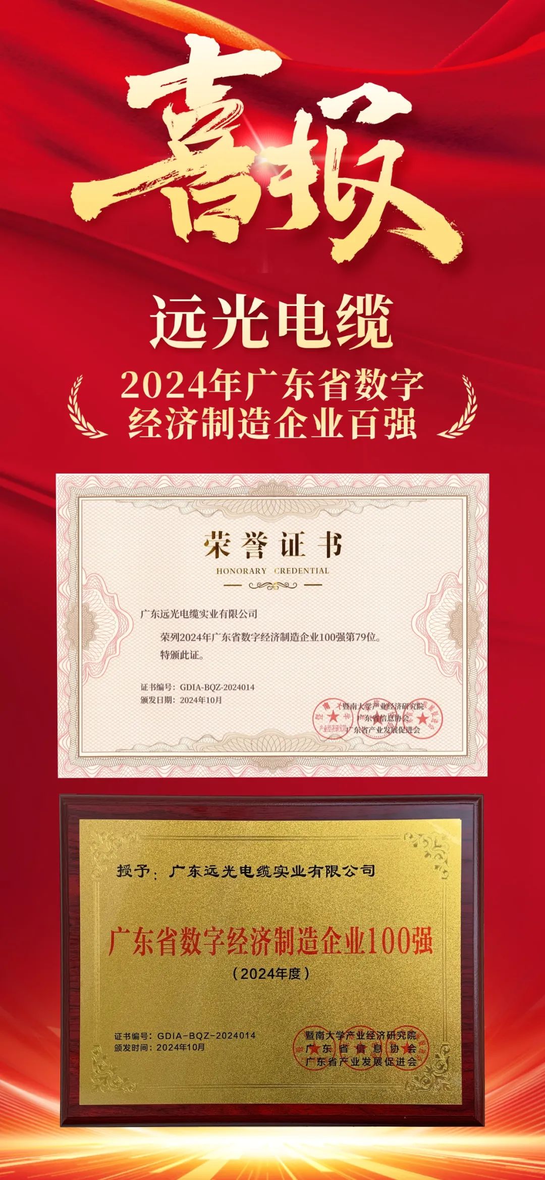 喜讯!远光电缆获评“2024年广东省数字经济制造企业百强”称号