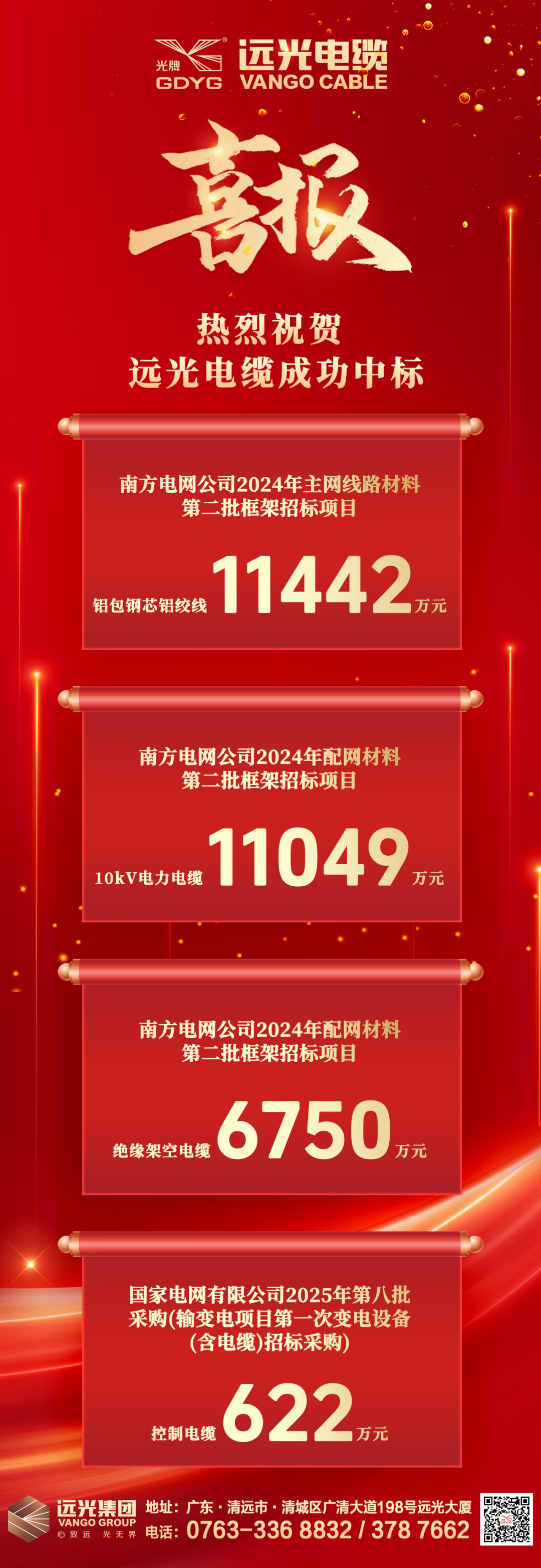 重大喜讯!远光电缆中标2.98亿元!