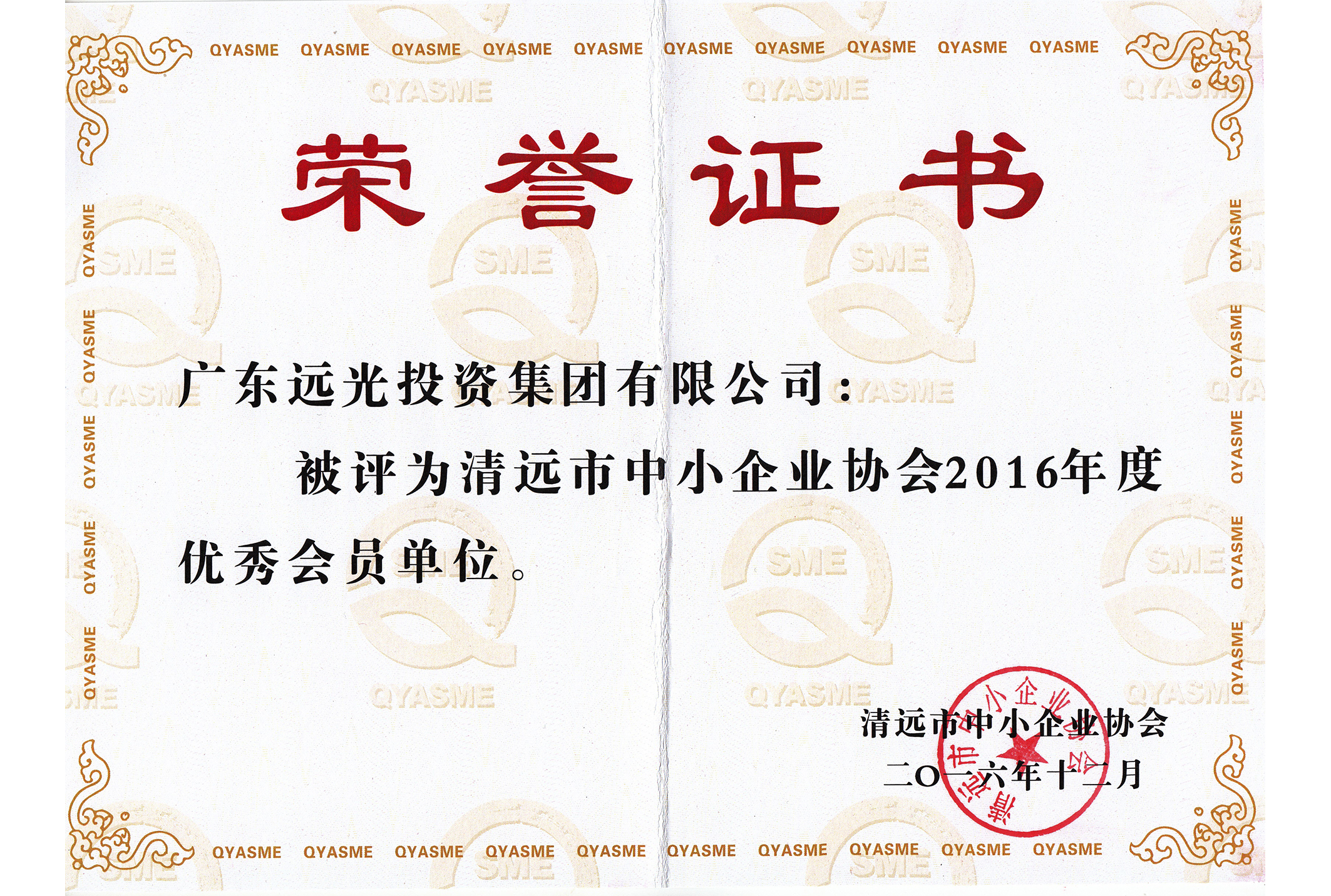 清远市中小企业协会优秀会员单位牌匾to集团公司