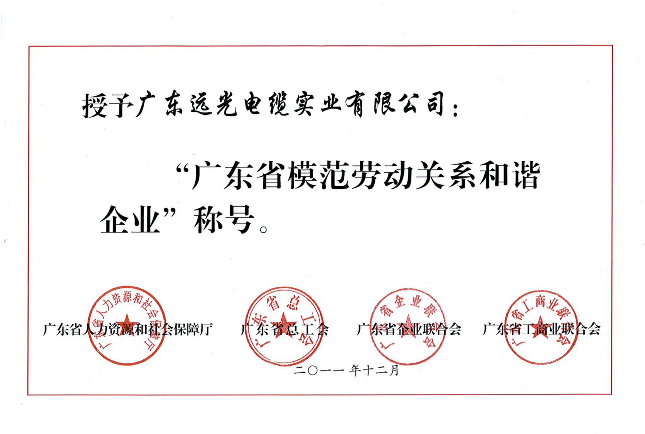广东省模范劳动关系和谐企业