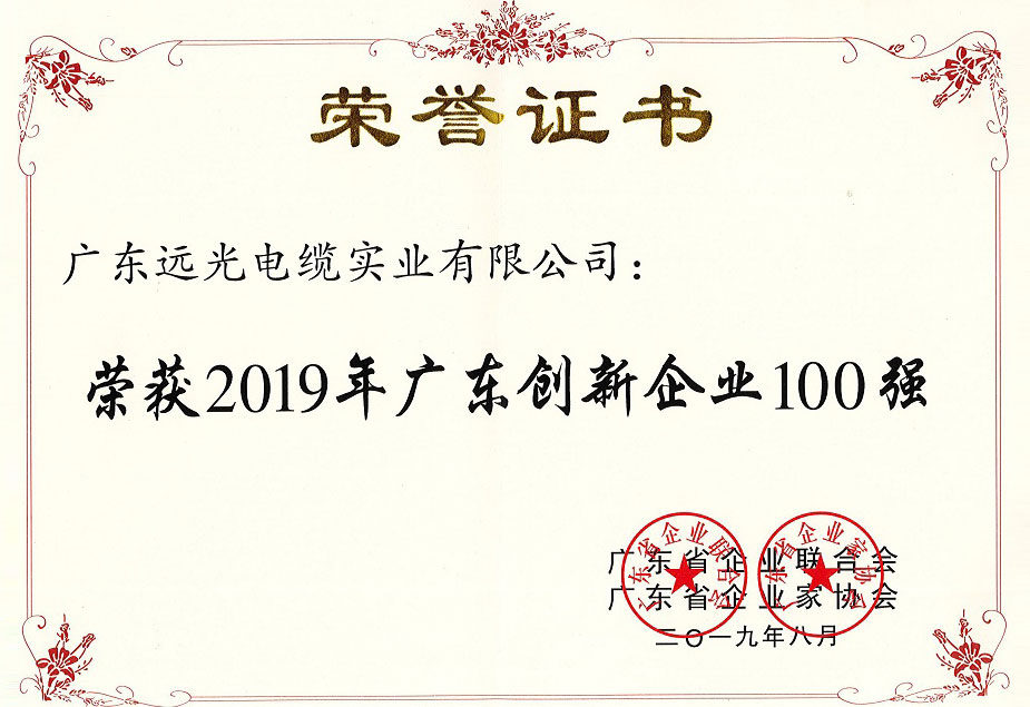 广东创新企业百强证书